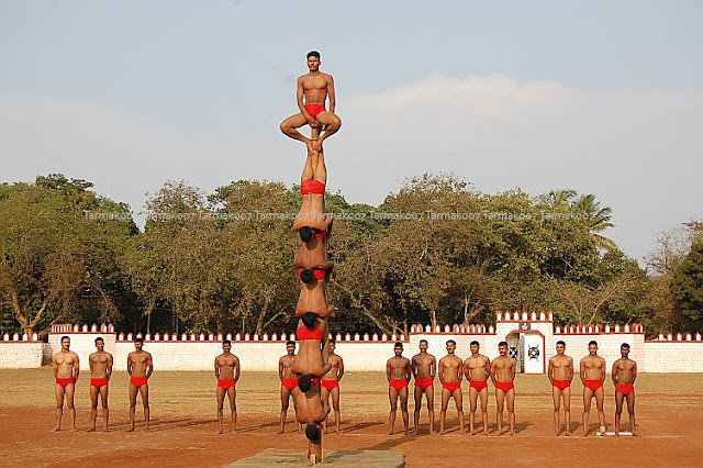 Belgaum: The Maratha Light Infantry Regimental Centre (MLIRC) has the unique distinction of giving mandatory training for their recruits in Malkhamb, a tradtional form of sports, popular in the Belgaum and Maharashtra region. (Wikipedia says that the name has originated from the word 'malla' which means a gymnast or a man of strength and 'khamb' meaning a pole.) Every recruit who gets enrolled with MLIRC is put through rigorous sessions to master Malkhamb, a treat to watch, when performed individually or as a group.