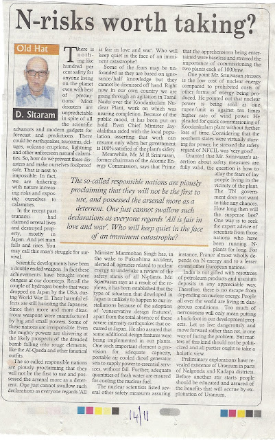 Hyderabad's newspaper The Hans India. Unlike the current-day